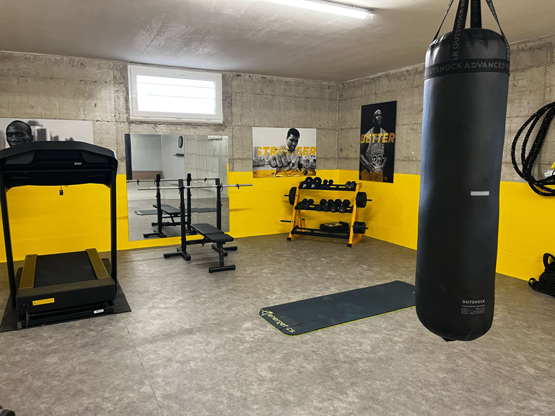 équipé de matériel haut de gamme (tapis de course, musculation, etc.).